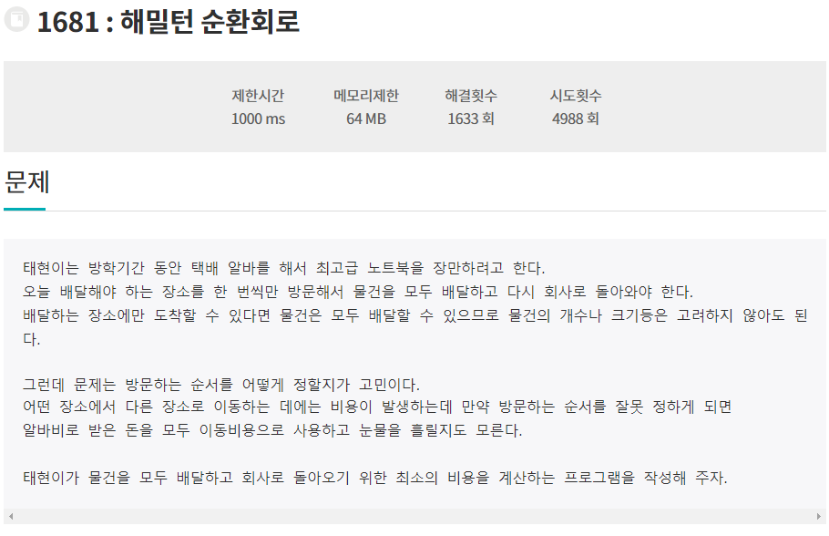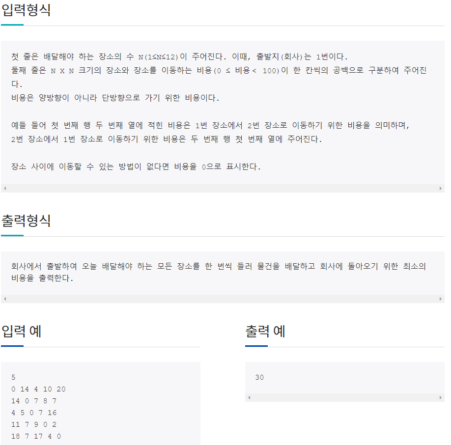 가능한 경로들 중에 최적의 경로를 찾는 것이기 때문에 (최소 비용 구하기) DFS를 돌리면 되는 문제이다.